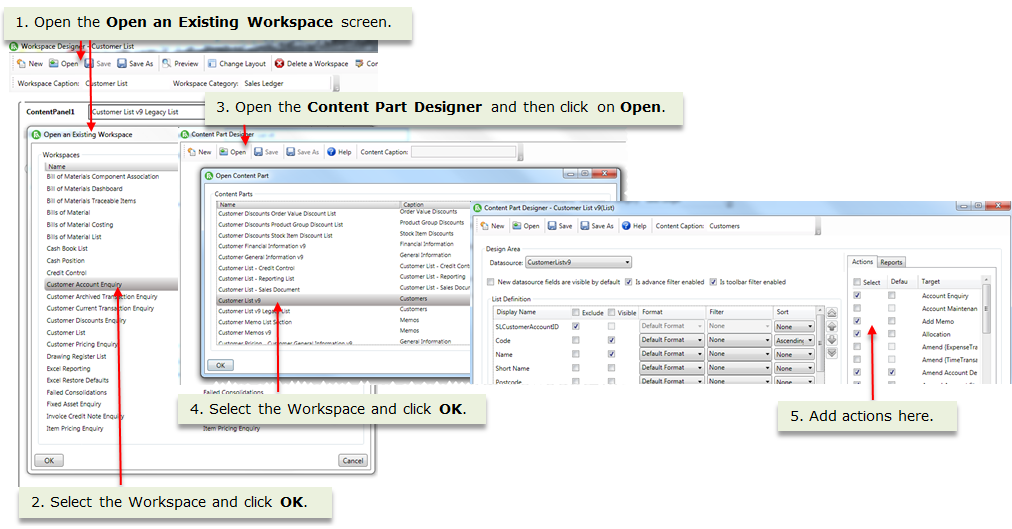 Sage 200 windows (actions) also have features defined in System Administration. To be able to access an action from a workspace, you must have the relevant feature for that action enabled for your role, even if you have access to the workspace.