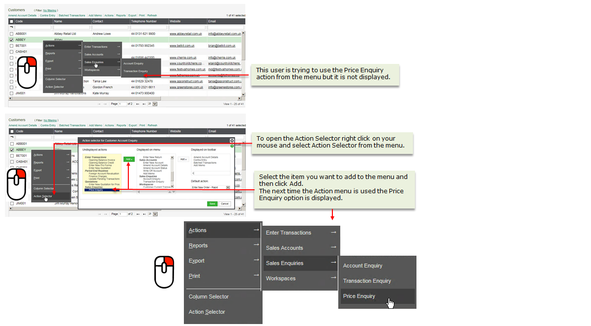 For example, Sales Ledger analysis codes are not displayed on the Customer Account Enquiry workspace by default. You can add an analysis code using the Column Selector.