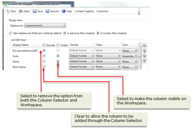 Tools > Run Workspace Designer.)If required, you can make a column available or visible on a workspace content part from here.